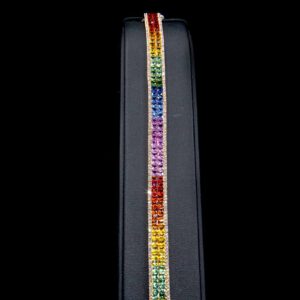 Dieses handgefertigte Armband zieren 34 Saphire mit insgesamt 18.61ct, die sich funkelnd aneinanderreihen. Die Steine wurden in 18kt Roségold gefasst.