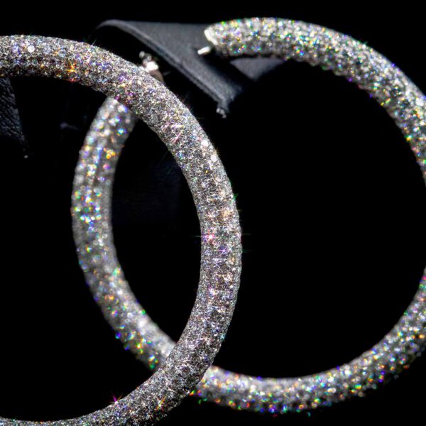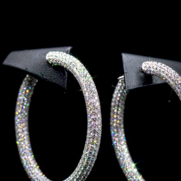 Ein Paar Creolen in Weißgold 18 kt, ringsum mit 1.458 pavé gefassten Brillanten 21,38 ct